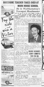 The other boy was Bernard Page* of 12 Maude Terrace, Walthamstow, who left the sixth form at the school in February. But the school presents a second prize, the Mark House Award, and runner-up Bernard received this for being so close to ‘Cosi’ as he is popularly known.